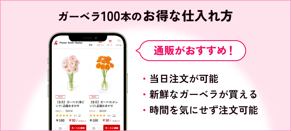ガーベラ100本を用意する際は通販サイトで購入するとお得に仕入れることができますよ。