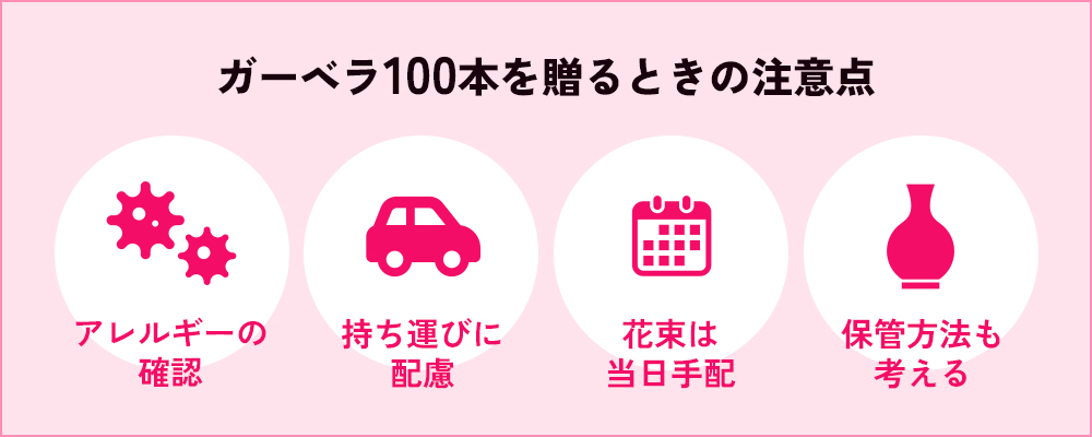 ガーベラ100本を贈る際の注意点は以下のとおりです。