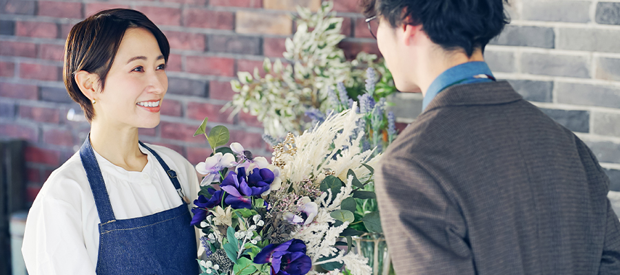単に花を販売するだけでなく、来店するお客さんの希望を聞いて花の種類や色を提案するのも花屋の大切な仕事です。