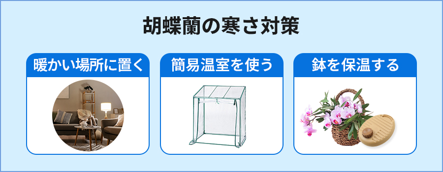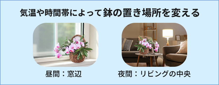 冬場は胡蝶蘭を室内に置き、必要であれば置き場所を都度調整しましょう。