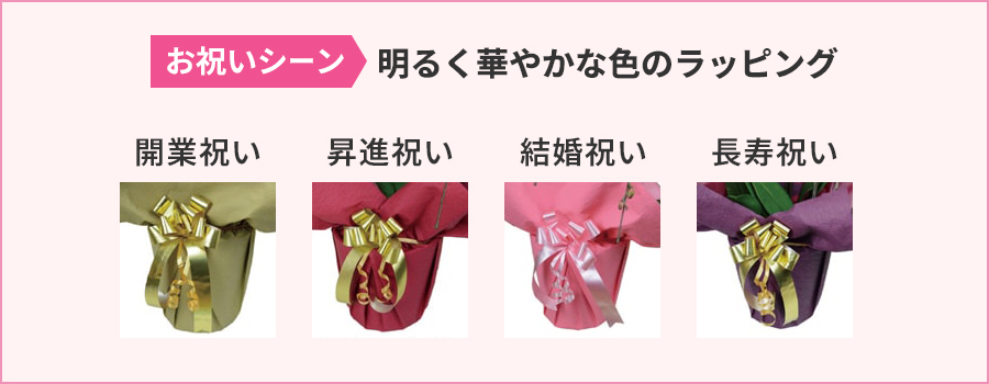 大々的なお祝いであれば、色だけではなくラッピングの豪華さにも気を配るとより素敵な贈り物にできますよ。