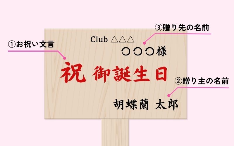 キャバ嬢の誕生日に胡蝶蘭やスタンド花を贈るときは、立て札を付けるのがマナーです。