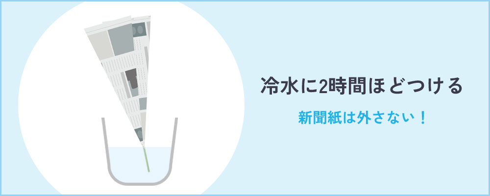 熱湯から出したら、新聞紙を巻いたままの状態で、冷水に2時間程度つけておきます。