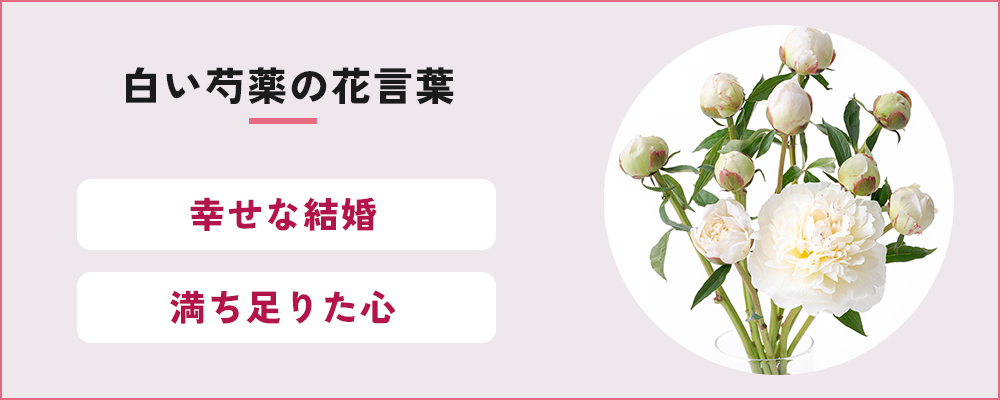 白色の芍薬の花言葉は「幸せな結婚」「満ち足りた心」。