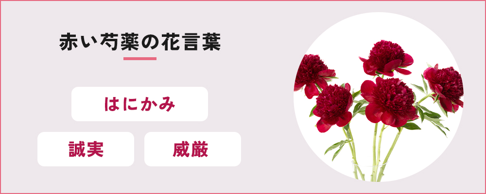 赤色の芍薬の花言葉は「はにかみ」「誠実」「威厳」。