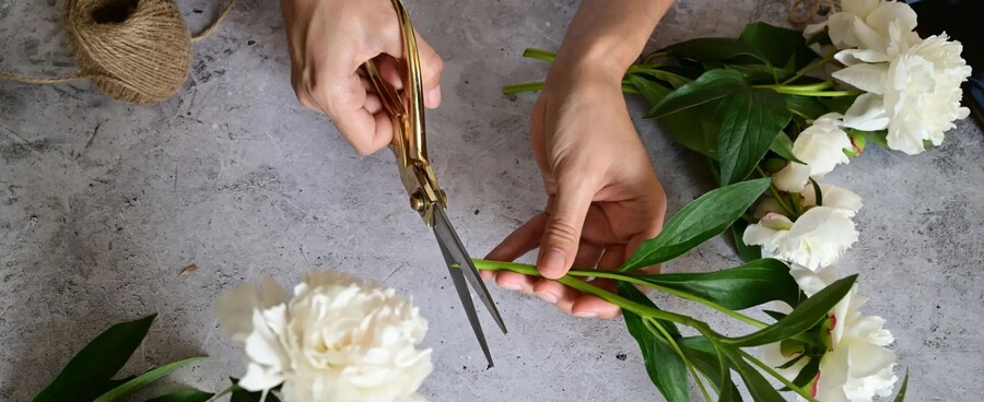 茎の切り戻しや水替えなどをして新鮮な切り口から水を吸わせてあげるのが解決策ですが、その際に茎を短めにカットして花瓶の淵で花を支えられるように飾ってみましょう。