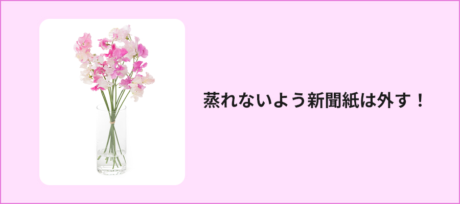 スイートピーは湿気に弱いため、新聞紙で巻くことで、蒸気が直接当たって傷んでしまうのを防げます。