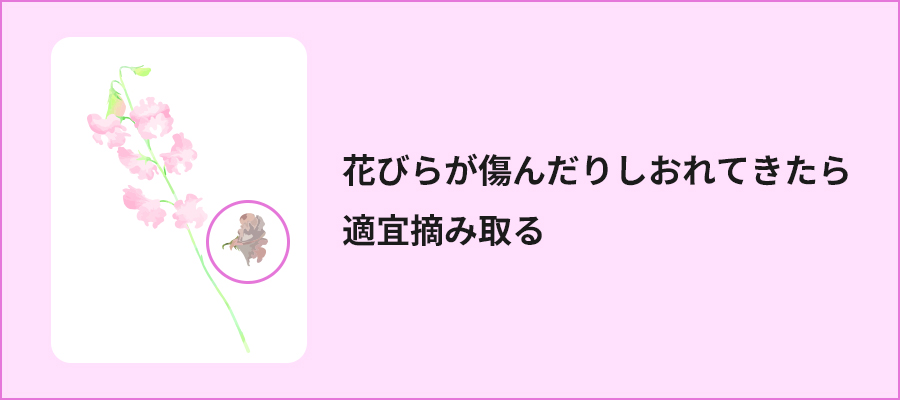 花びらが透けたようになっていたり、シミになっていたりしたら、適宜摘み取るようにしましょう。